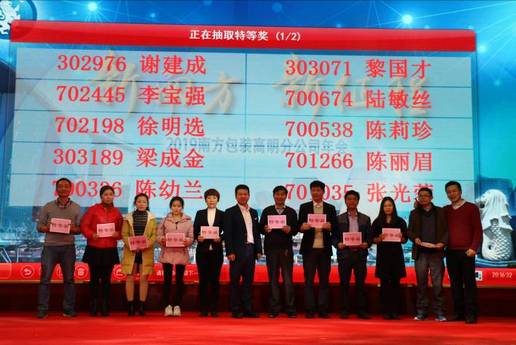 抽獎環(huán)節(jié)引起員工一度歡呼雀躍,高層領(lǐng)導(dǎo)特意為兩名工齡達(dá)20年的員工送上特等獎,更是溫暖眾人,將年會氣氛推向高潮。
