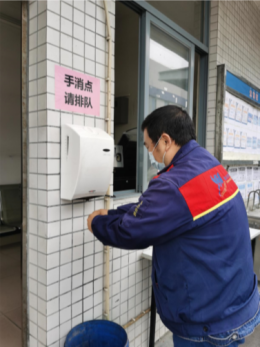 ▲設(shè)置廢棄口罩回收點以及手消毒點,廢棄口罩統(tǒng)一棄置,集中處理