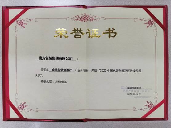 During the M Success Innovation and sustainable Packaging Award Ceremony, Southern-Packaging was one of the enterprises that won the "China Package Technology Innovation and Sustainable Development Award 2020”.