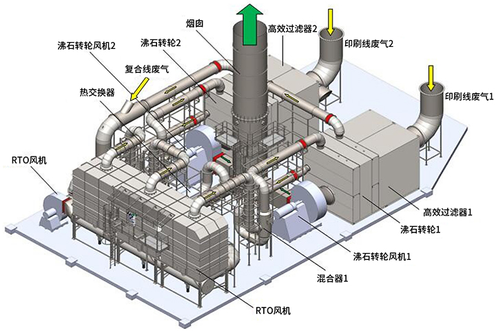 從2010年開始,與國內(nèi)外專業(yè)的VOCs治理公司深入研究,分別設(shè)計(jì)不同的治理方案對(duì)印刷、復(fù)合等工藝產(chǎn)生的VOCs進(jìn)行治理,VOCs廢氣穩(wěn)定達(dá)標(biāo)排放。其中針對(duì)印刷工序的VOCs治理,公司投資約4000萬人民幣,與國外專業(yè)的VOCs治理公司合作,引進(jìn)具備世界先進(jìn)水平的軟包裝VOCs治理系統(tǒng),采用“沸石轉(zhuǎn)輪濃縮+RTO燃燒+余熱利用”的處理工藝,VOCs處理效率達(dá)95%以上,設(shè)計(jì)目標(biāo)總VOCs排放濃度為50mg/m3,遠(yuǎn)低于現(xiàn)行廣東省地方標(biāo)準(zhǔn)《印刷行業(yè)揮發(fā)性有機(jī)化合物排放標(biāo)準(zhǔn)》(DB44/815-2010)總VOCs最高允許排放濃度為120mg/m3的要求。